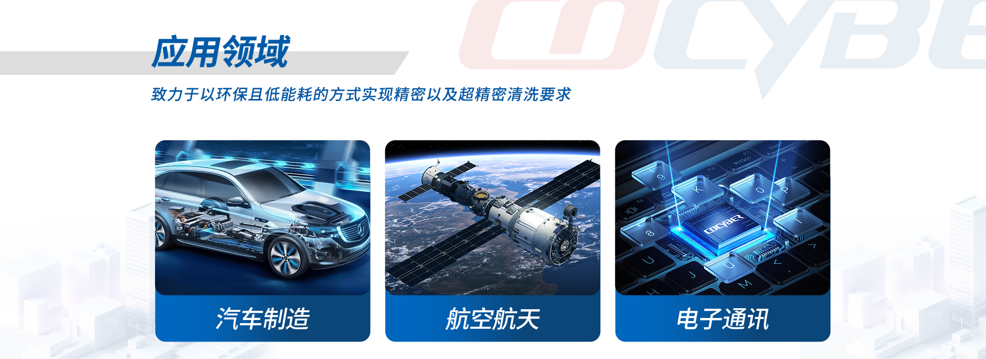 精密清洗設(shè)備應(yīng)用領(lǐng)域涉及航空航天、汽車(chē)制造、電子電器,精密五金等眾多行業(yè)